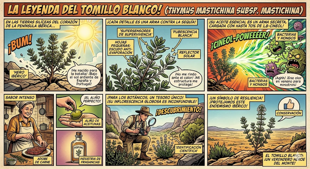 Dato curioso: A diferencia de otras especies de tomillo que tienen un aroma más cálido y terroso, la subespecie mastichina destaca por un frescor casi mentolado, lo que la hace inconfundible en el campo.